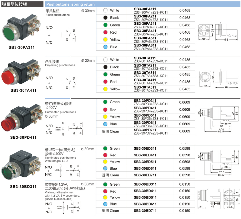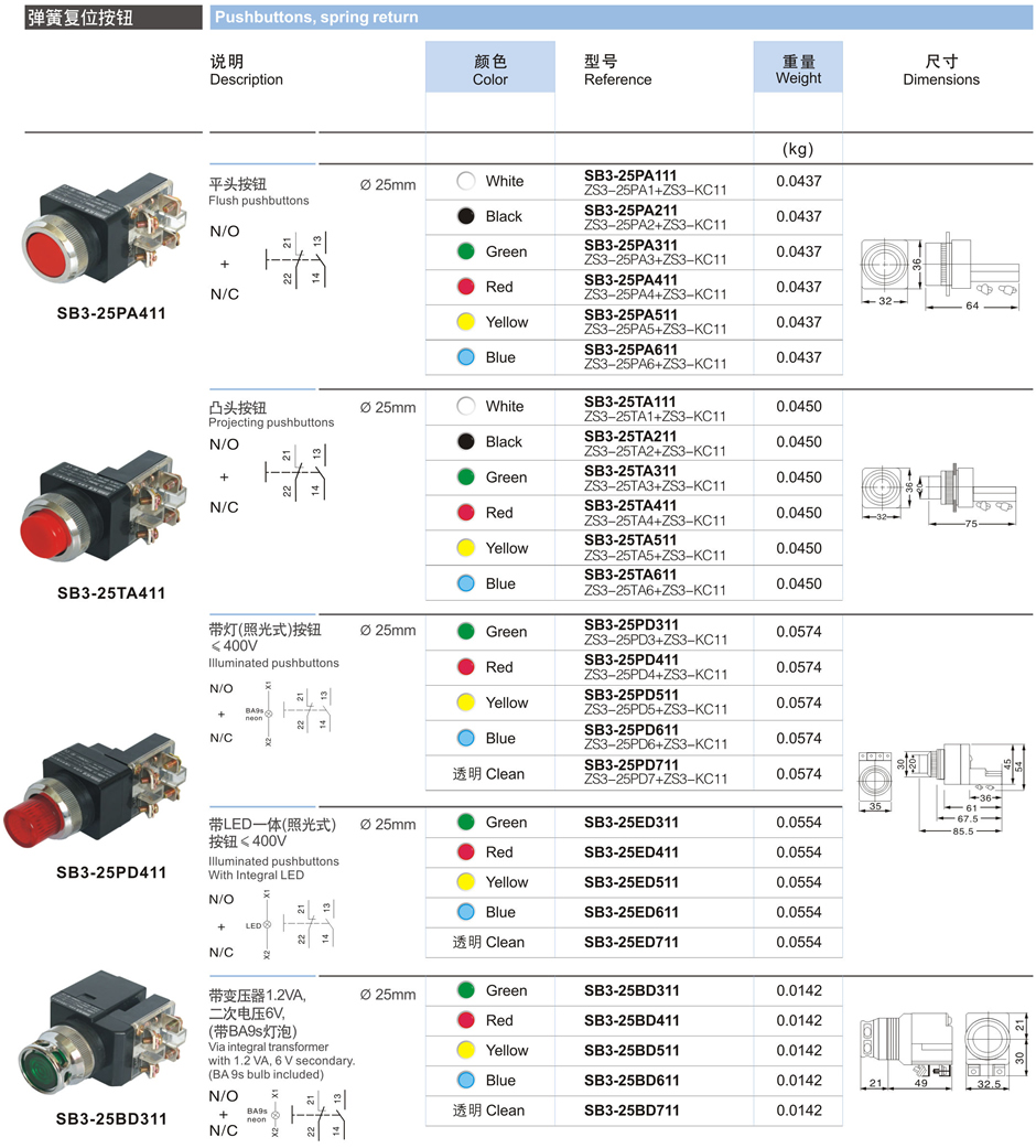 Pushbuttons, spring return