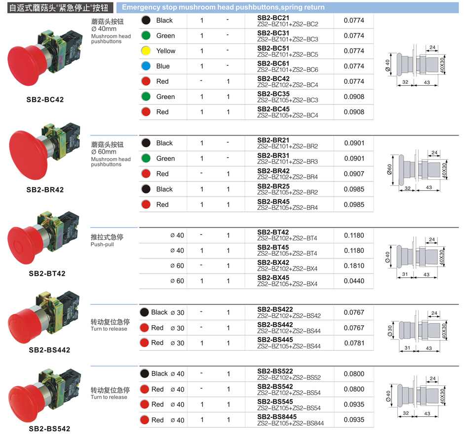 自返式蘑菇頭"緊急停止"按鈕