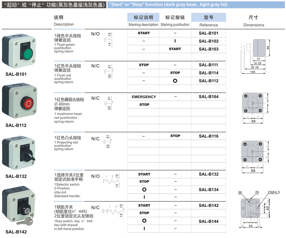 “起動”或“停止”功能(黑灰色基座淺灰色蓋)
